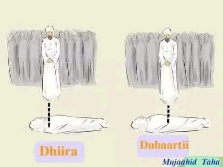 - Takbiiraan Afuraffaa dhaa. Garuu ka orma garitti jarjaruu hin qabu. Du’aa’ii birootis godhuu ni dandaha nama du’ee fi Muslimtoota birootifis. San keessaa takka tana:-